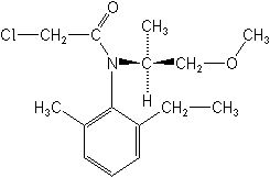 O 2-cloro-N-(2-etil-6-metilfenil)-N-[(1S)-2-metoxi-1-metiletil)]acetanilida (s-metolachlor) é um herbicida pré- emergente registrado no Brasil para cana-de-açúcar, feijão, milho, soja e algodão. Controla principalmente gramíneas, mas também algumas dicotiledôneas.
