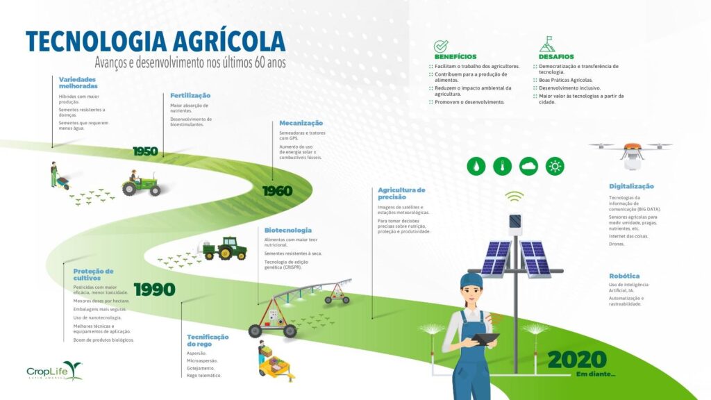Outra questão que merece ser destacada é que hoje, graças à tecnologia e à visão dos novos produtores, o agro desempenha um papel ambiental muito importante. Faz isso de muitas maneiras, especialmente com tecnologias que possibilitam o agronegócio sustentável. Alguns exemplos disso incluem os irrigadores eletrônicos (que evitam o desperdício de água), o uso de dispositivos para avaliação climática e do solo, o rastreamento de pulverizações aéreas, o monitoramento por satélite, o trabalho adequado em relação aos cuidados com o solo e a agricultura familiar.