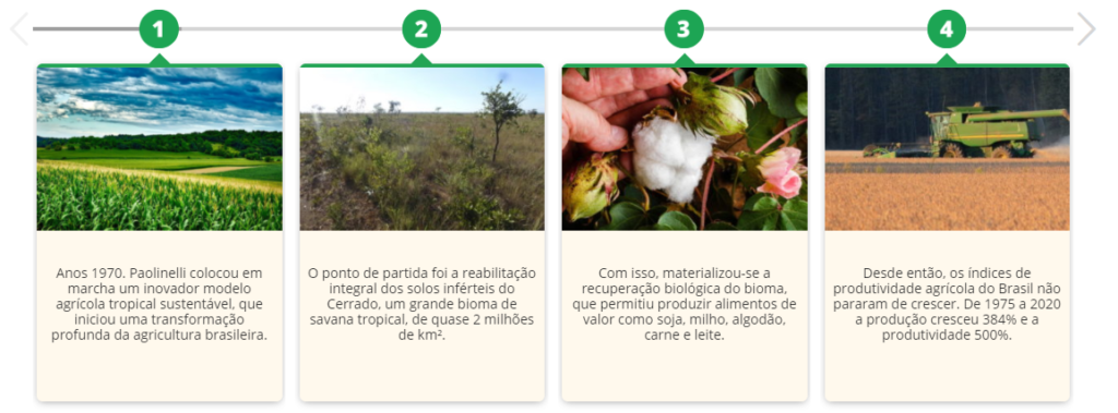 Foi por meio desse marco para o país que Paolinelli se tornou referência mundial em agricultura e foi elogiado por grandes especialistas no assunto, como o agrônomo norte-americano Norman Borlaug, conhecido como líder da Revolução Verde e ganhador do Prêmio Nobel da Paz de 1970.