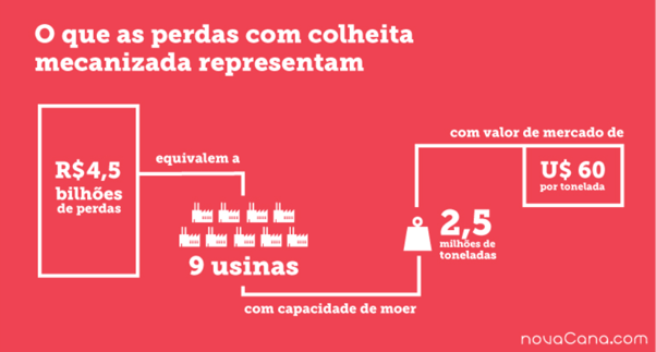 O processo de mecanização aumenta o rendimento operacional da colheita e também favorece a sustentabilidade do solo, por dispensar a queima. Porém, além dos benefícios, esse processo causa perdas econômicas consideráveis durante a colheita.