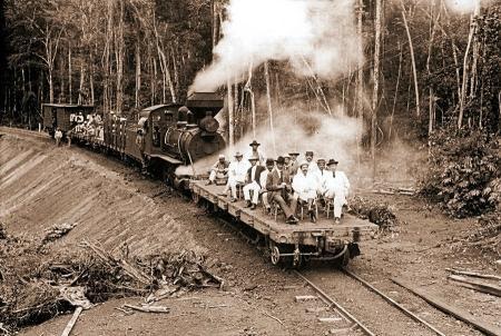 Fotografia de Senhores de Engenho na Amazônia em um trem à época da construção da ferrovia Madeira-Mamoré – Fonte:
