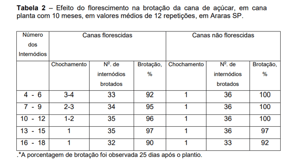 Veja a seguir uma imagem que ilustra o efeito do florescimento na brotação e perfilhamento da cana-de-açúcar.