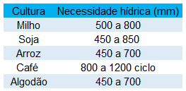 Sabendo estes dados fica muito mais fácil fazer o planejamento das estratégias que diminuem o efeito da falta de água no campo. Em contrapartida, também é importante entender a demanda hídrica da cultura que irá produzir.