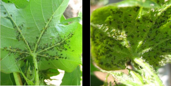 Esse é um pequeno inseto sugador de seiva. Possui coloração amarelo-claro a verde escuro e vive sob as folhas e também brotos novos de algodão. Ocorrem desde a germinação até os primeiros capulhos, preferindo os tecidos mais novos.