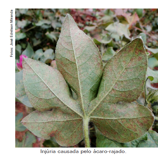 Os ácaros são organismos bem pequenos, com cerca de 0,5 mm, forma oval, de cor esverdeada com fêmeas apresentando duas manchas escuras no dorso. Ocorrem desde a emergência das plantas até a abertura das maçãs, principalmente em períodos de longa estiagem. Eles têm preferência pelas folhas da parte mediana e inferior das plantas, mas ocupam toda a planta em altas infestações.