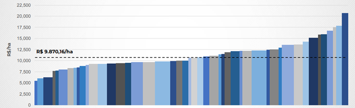 O cultivo da cana em si já demanda um alto custo por hectare, somente na implantação. Abaixo é possível averiguar que a implantação de um canavial tem alto custo: