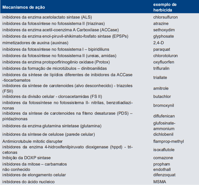 O mecanismo de ação de um herbicida é o local primário onde ele atua, ou seja, o primeiro passo bioquímico e biofísico no interior celular a ser inibido pela atividade do herbicida.