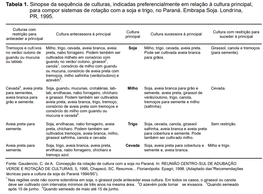 Você também pode acompanhar a tabela abaixo, que indica as melhores espécies para rotação de acordo com a cultura principal:
