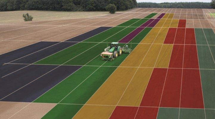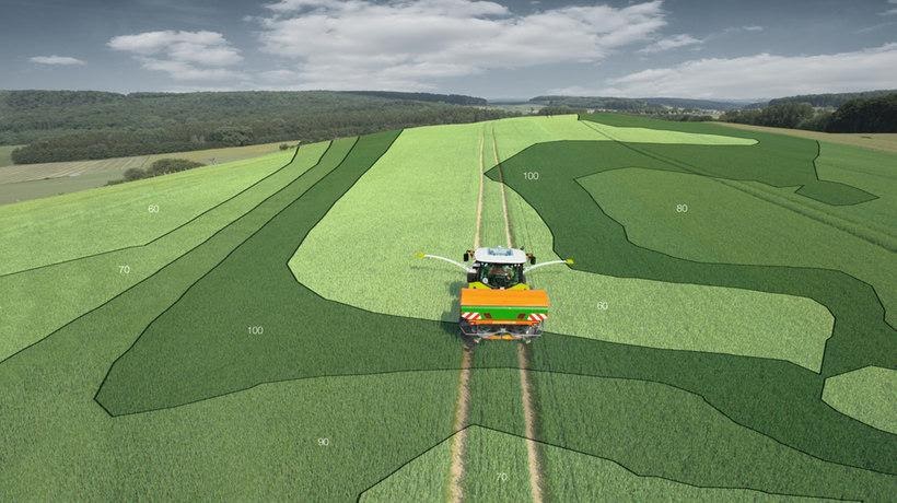 Exemplo de aplicação em taxa variável de acordo com a necessidade de cada parte do talhão. Fonte: CLAAS Agricultural machinery